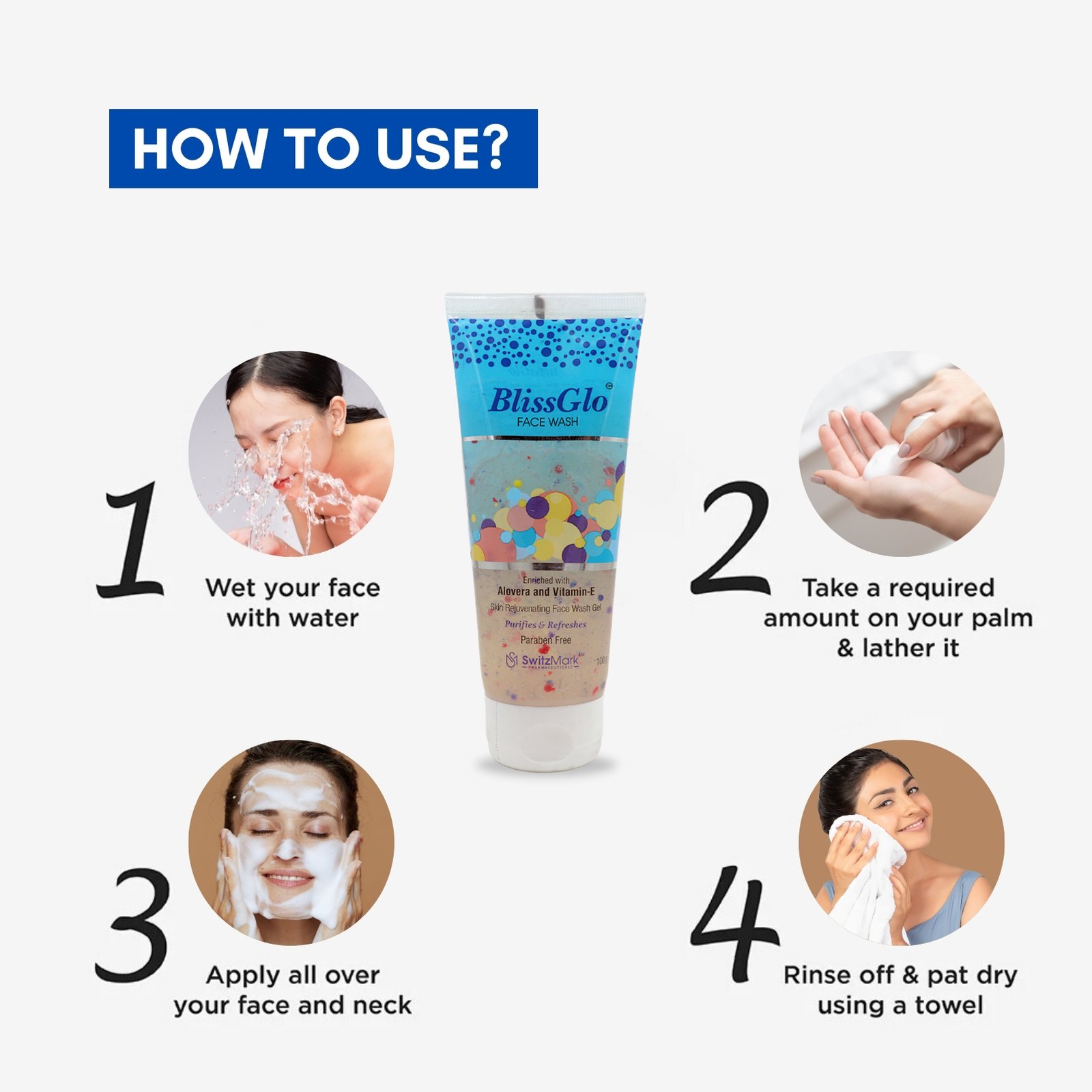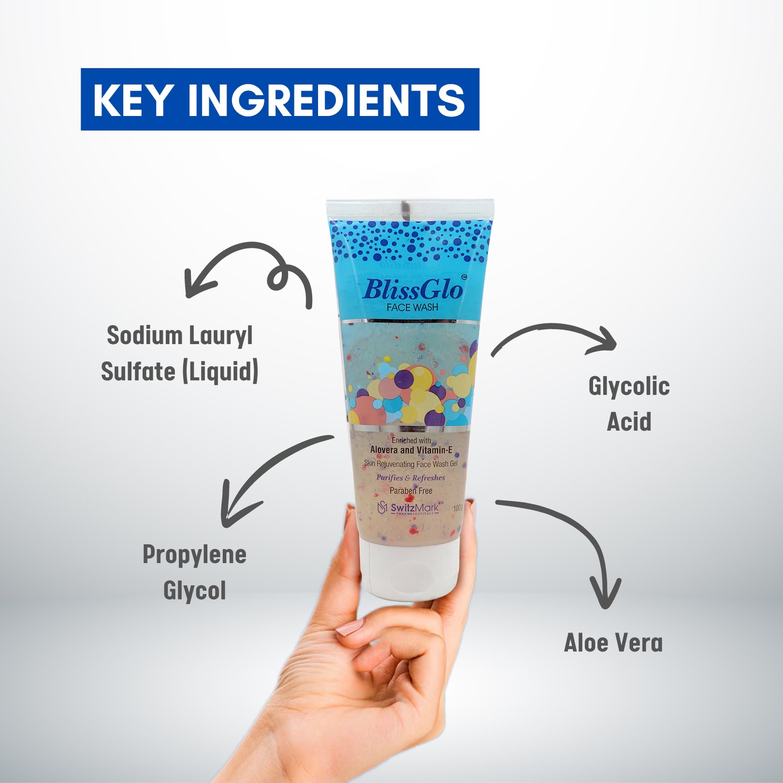 Blissglo Skin Rejuvenating Face Wash deeply purifies, effectively eliminates impurities and revitalizes the skin. It is enriched with potent ingredients, which Improves the tone and texture of the skin.